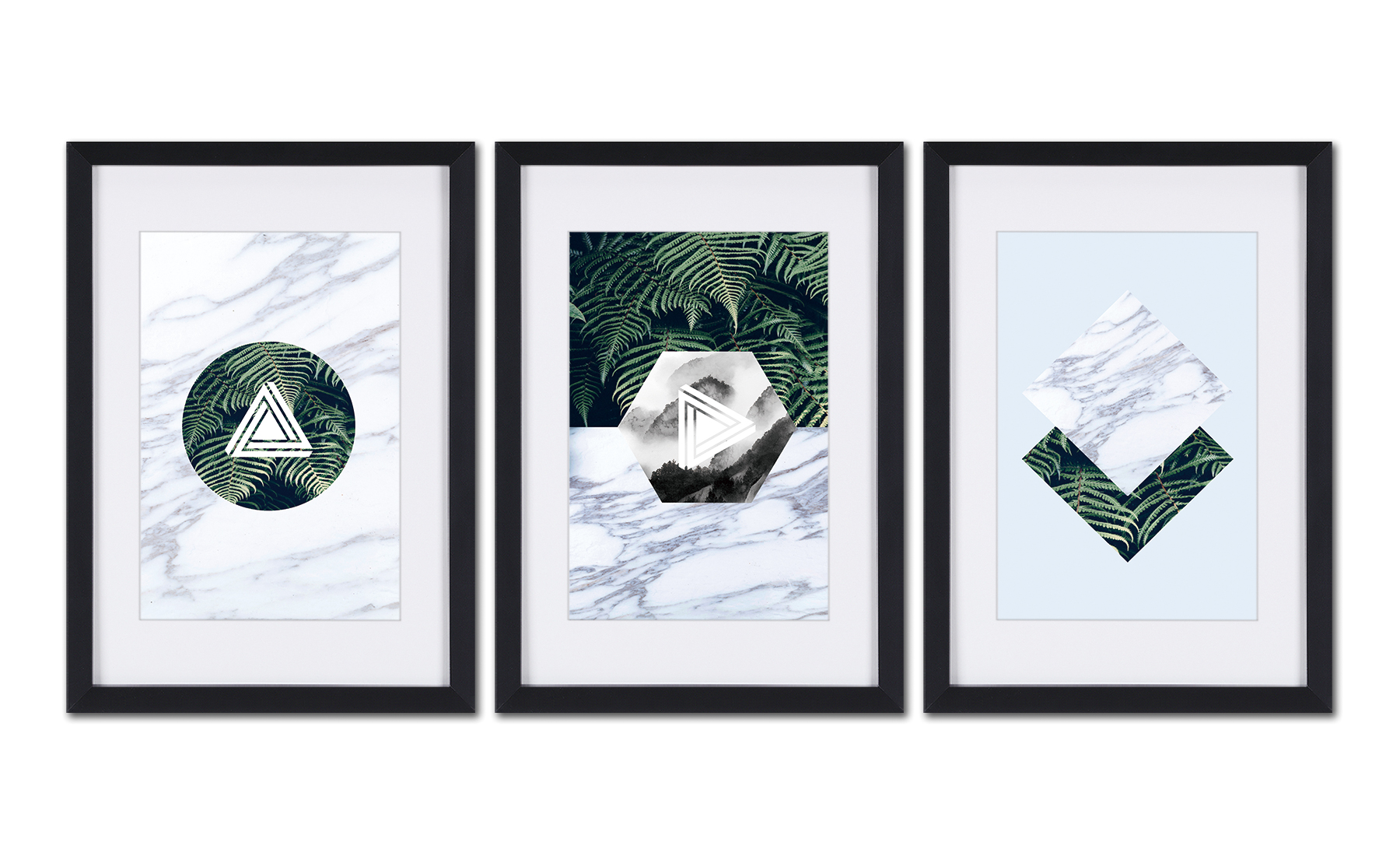 Modern Minimalist Wall Art Abstract Marble And Botanical Picture With Black Frame And Mat 11 X16 X 3pcs Canvas Print Painting Modern Artwork For Home Decor Walmart Com